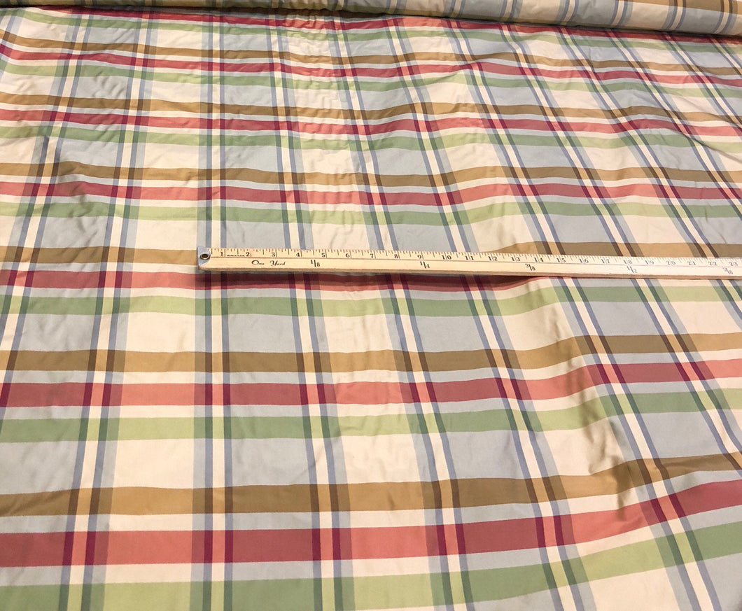 Silk taffeta plads 54" wide Sold by the yard Beautiful wine red green gold with greyish background