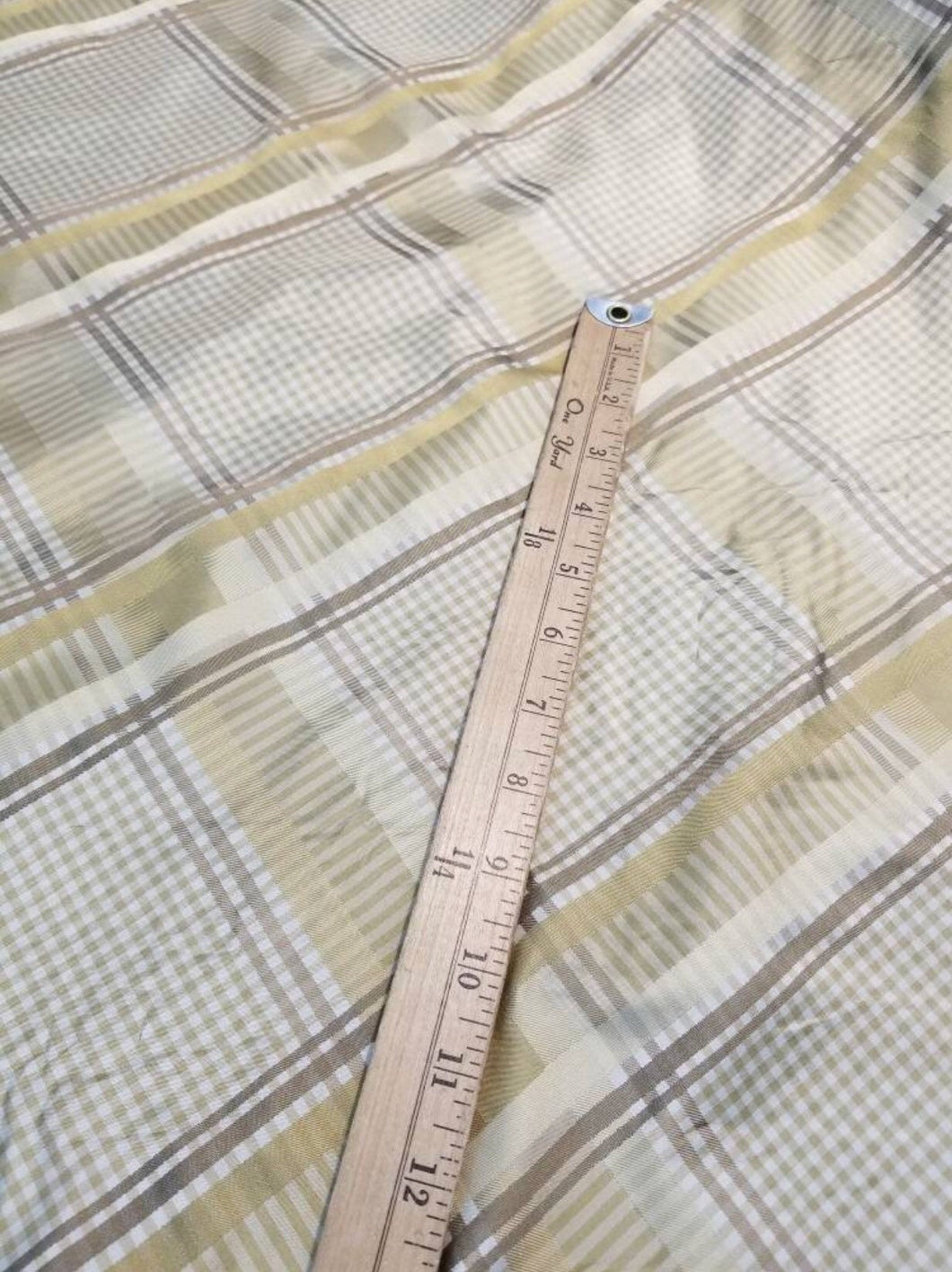 Silk taffeta satin stripes plads 54" wide   Beautiful tan colors      Fabric sold by the yard