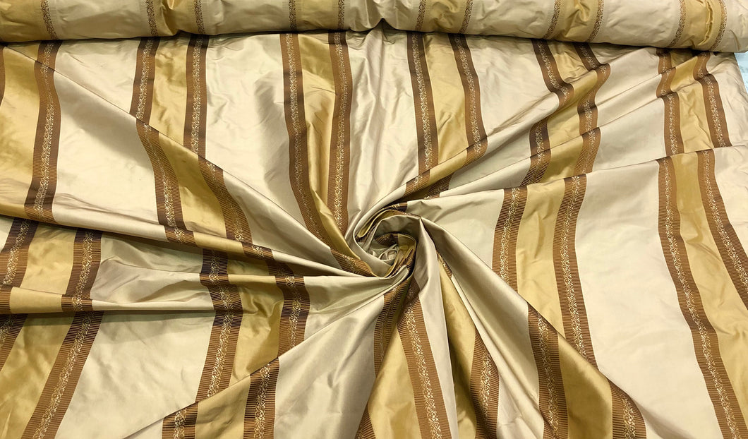 Silk taffeta stripes jaquard 54" wide Beautiful gold & mustard stripes taffeta jaquard fabric sold by the yard