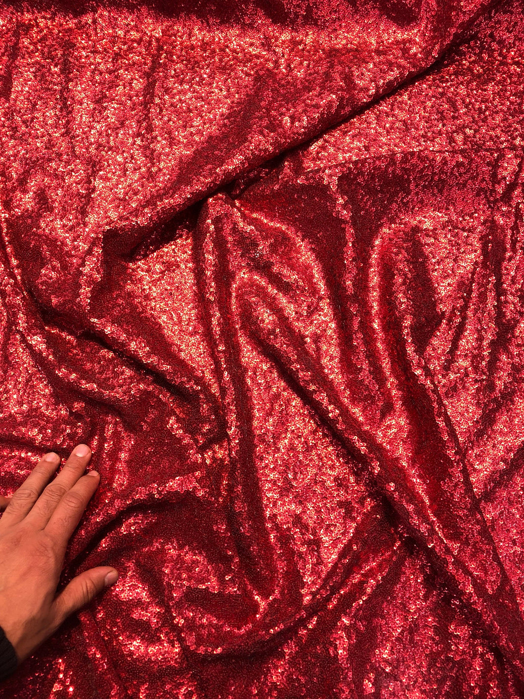 Solid sequins on mesh 52" wide Top of the line sequins Beautiful red color sequin fabric sold by the yard