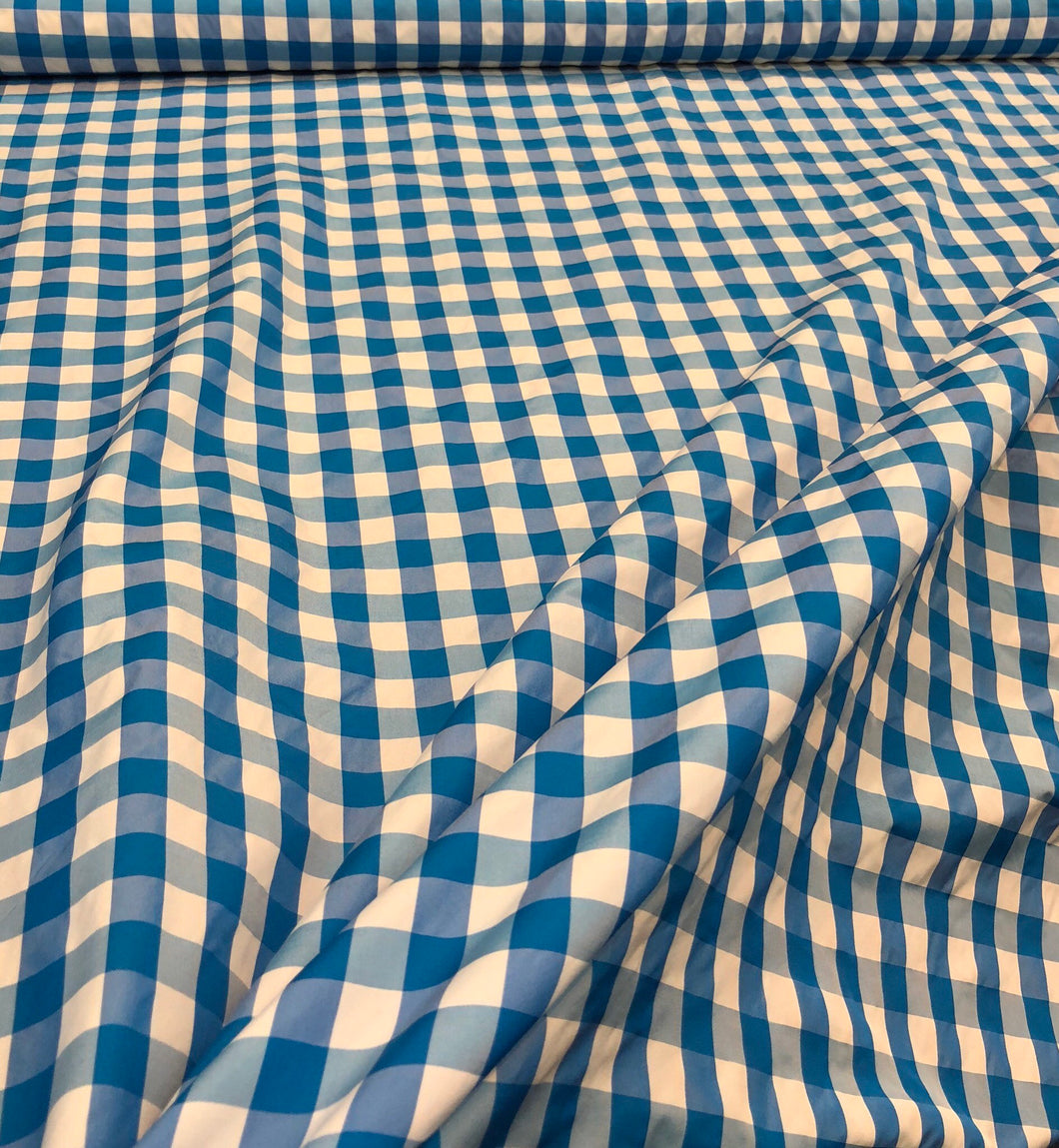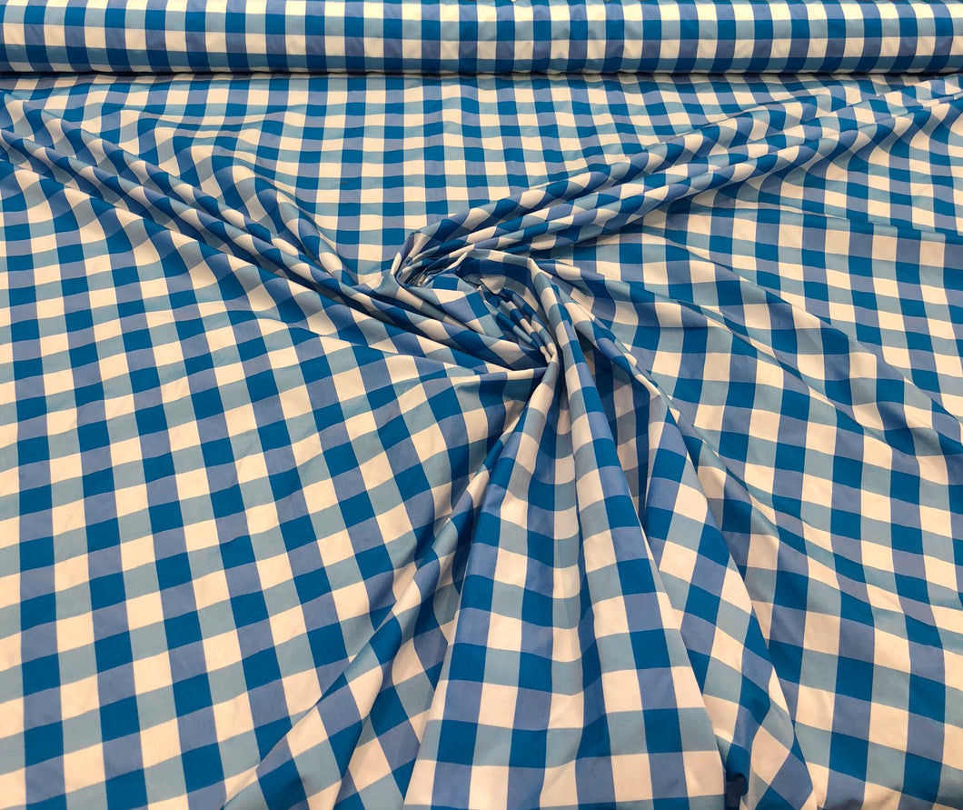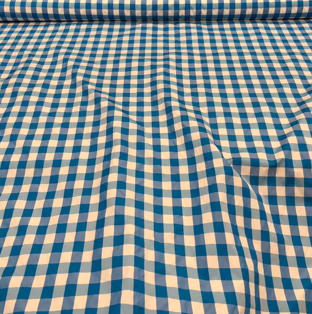 Taffeta gingham check 54" wide Sold by the yard Turquoise & white