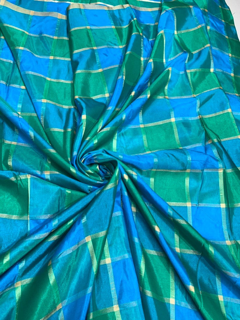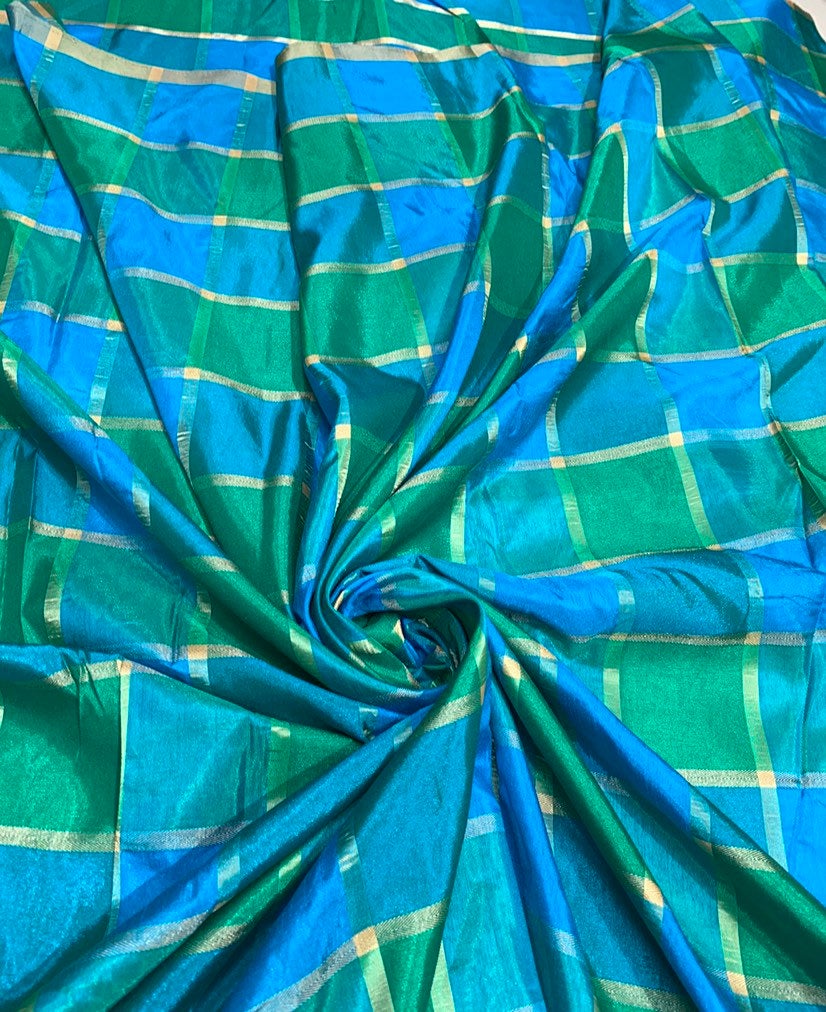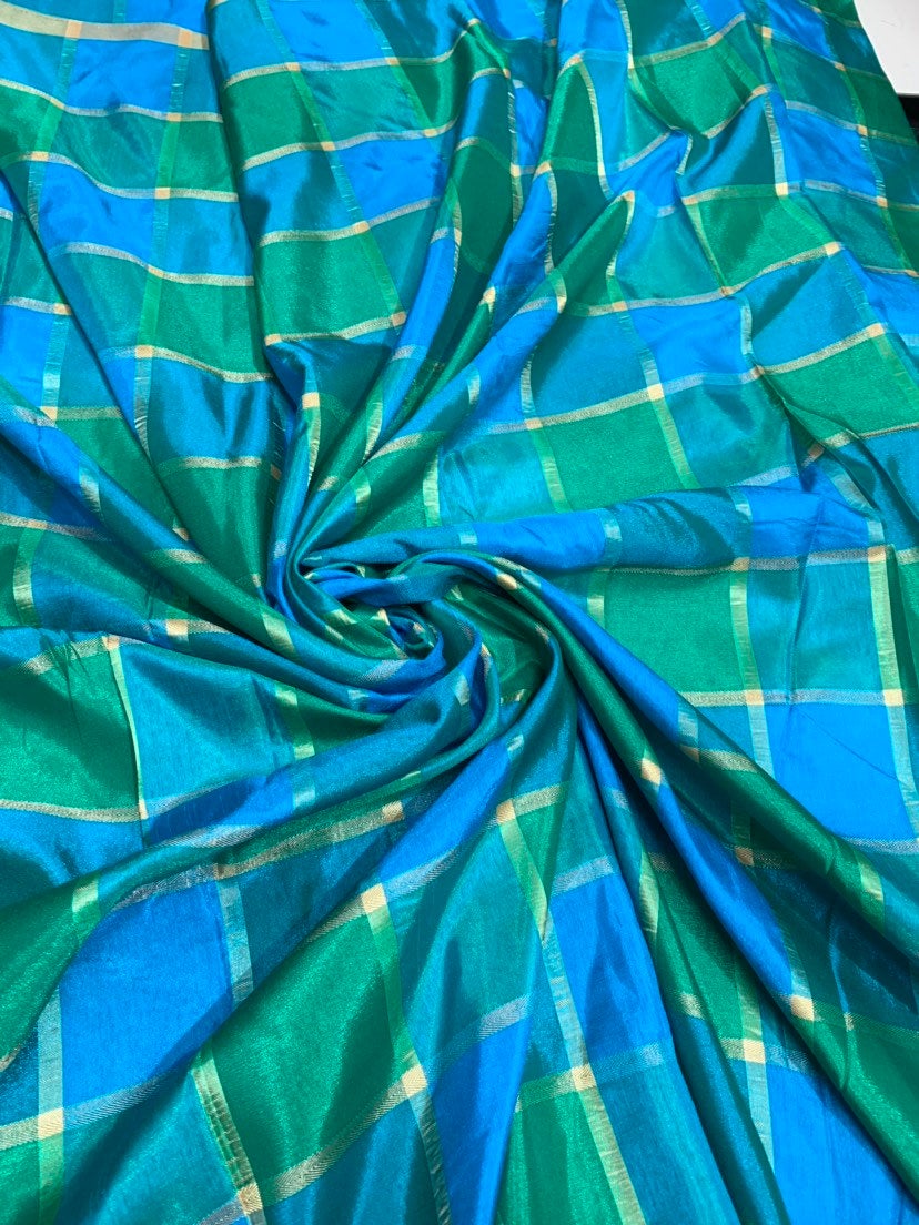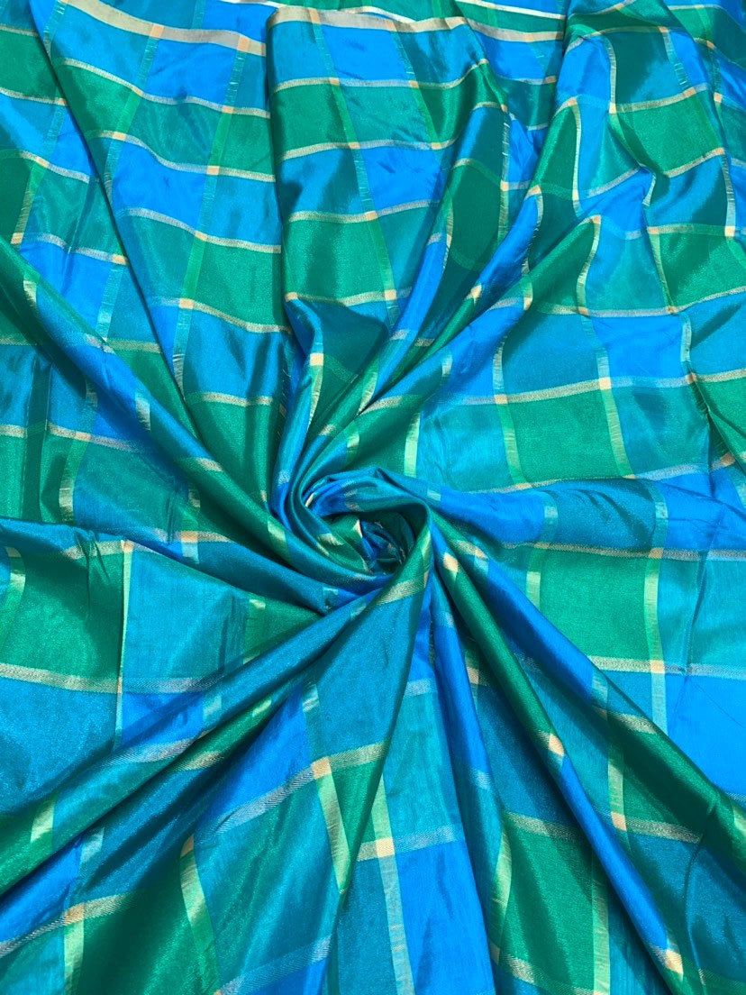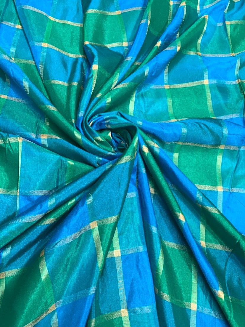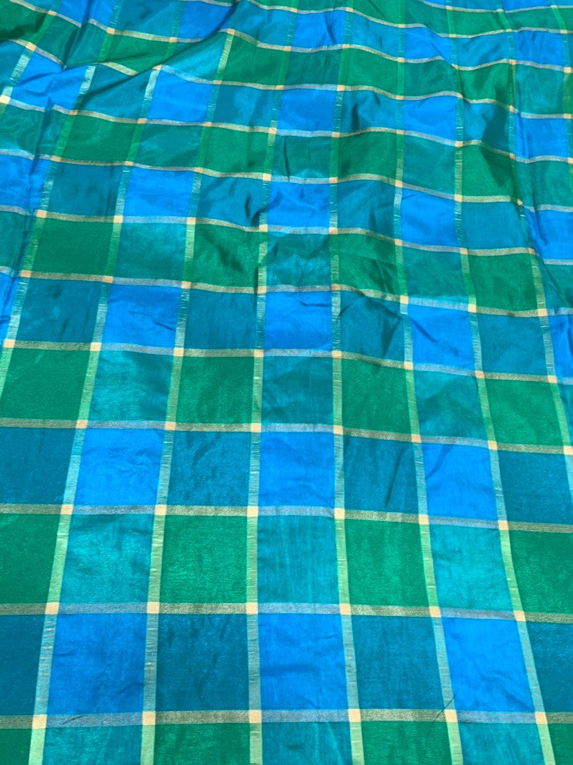 Viscose poly silky crepe check 44" wide beautiful peacock colors sold by the yard
