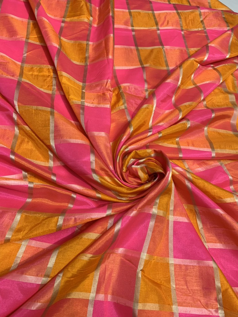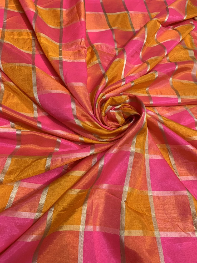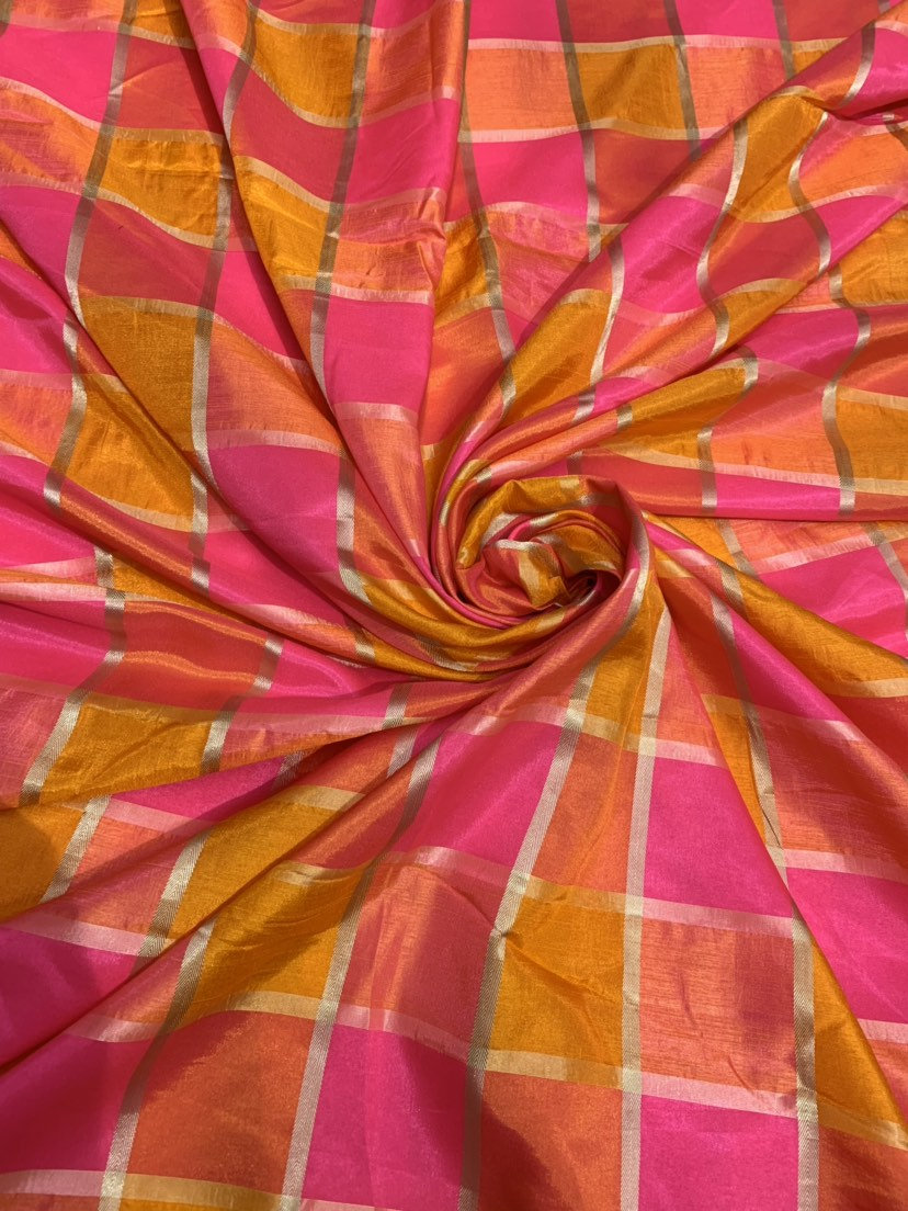 Viscose poly silky crepe plaid 44" wide Beautiful fusia mustard gold color combo sold by the yard