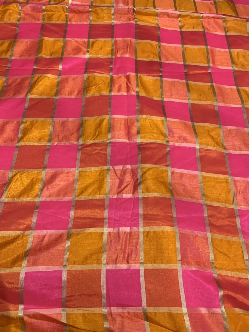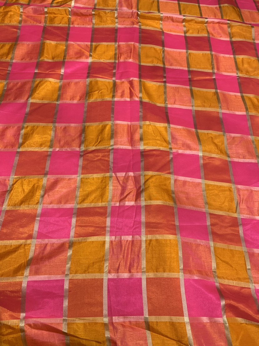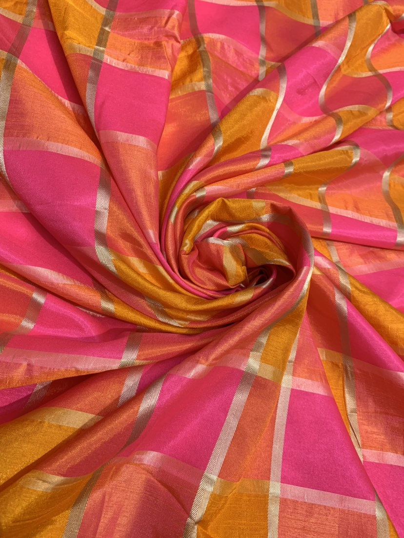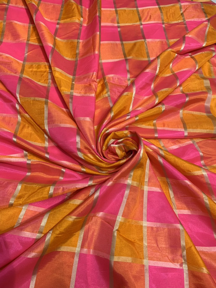 Viscose poly silky crepe plaid 44" wide Beautiful fusia mustard gold color combo sold by the yard