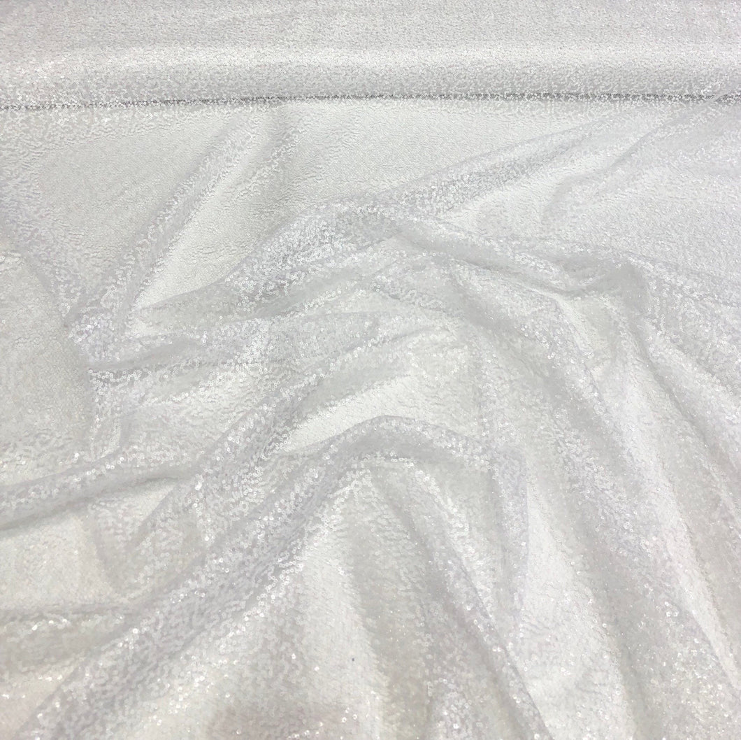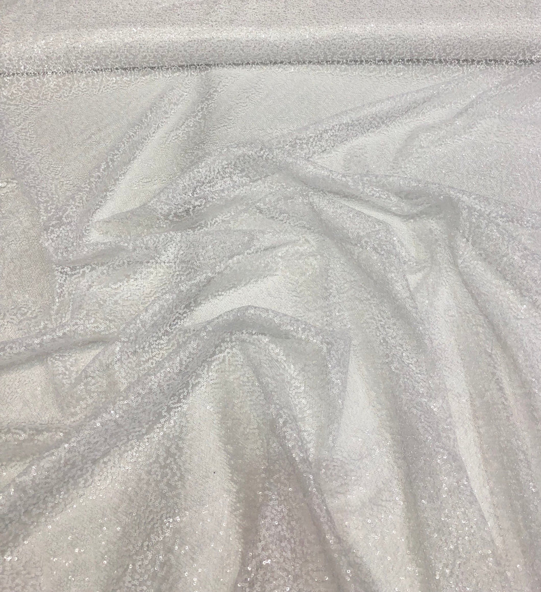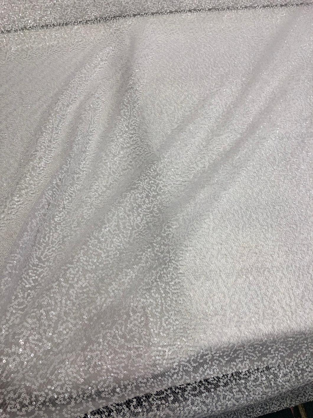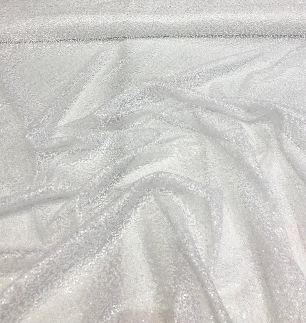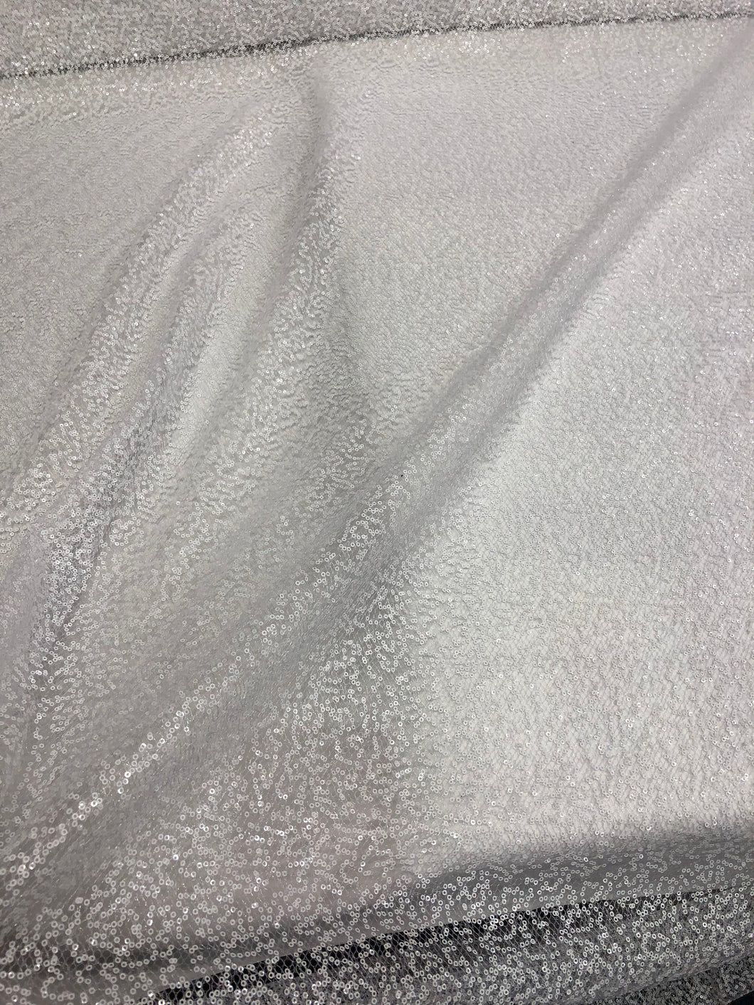 White sequins on sheer swirl mesh 52" wide Sequins fabric sold by the yard