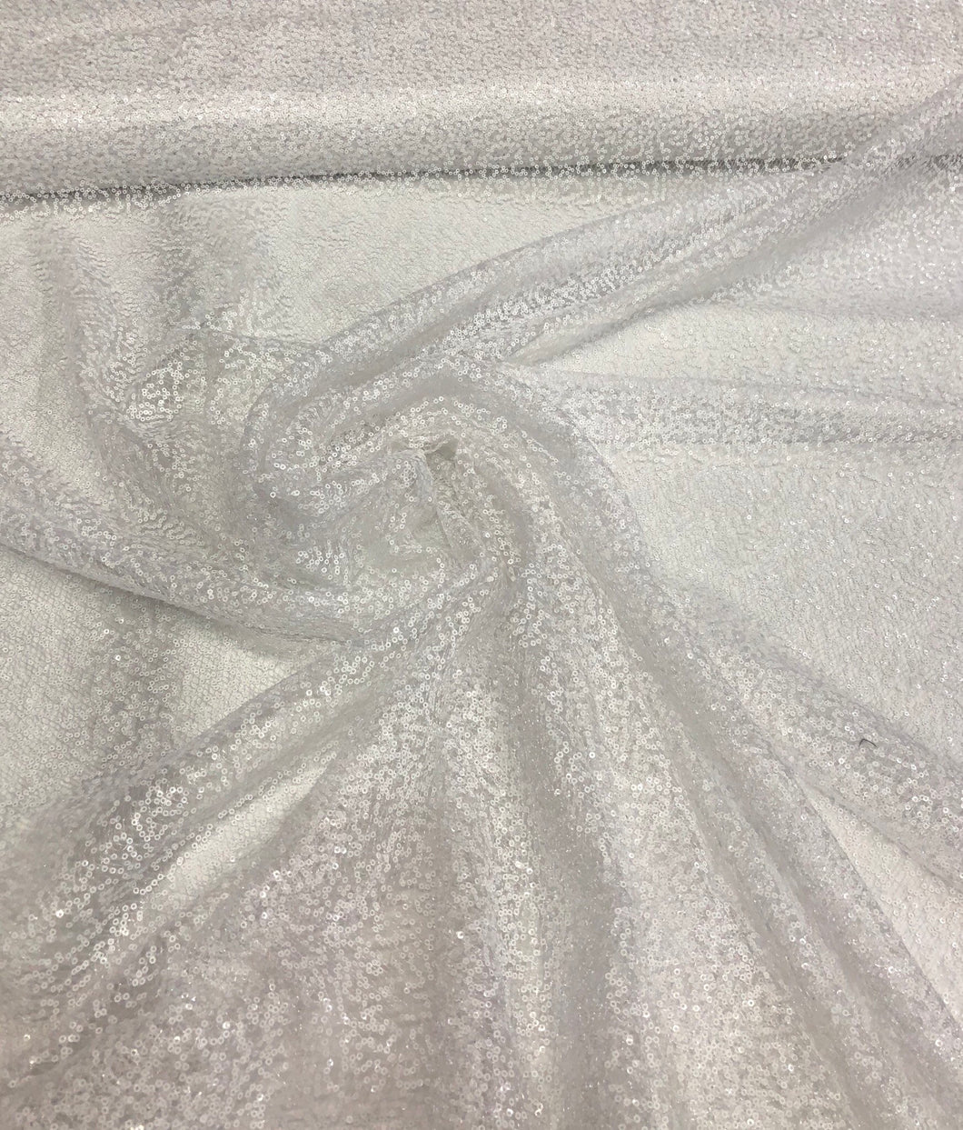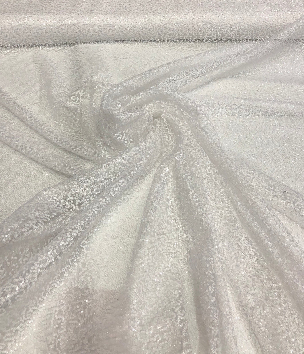 White sequins on sheer swirl mesh 52" wide    Sequins fabric sold by the yard