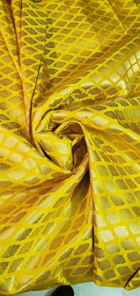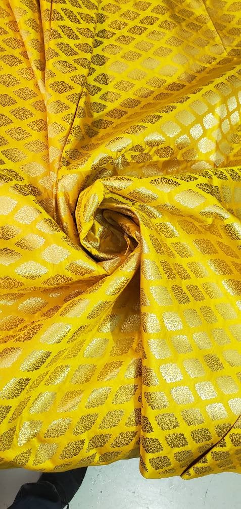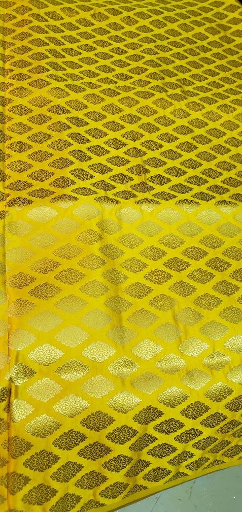 Jaquard sun yellow brocade 44" wide Beautiful sun yellow paisley brocade fabric sold by the yard Useable for apparel and interior decore like pillow cases, table runner, curtain or much more.....